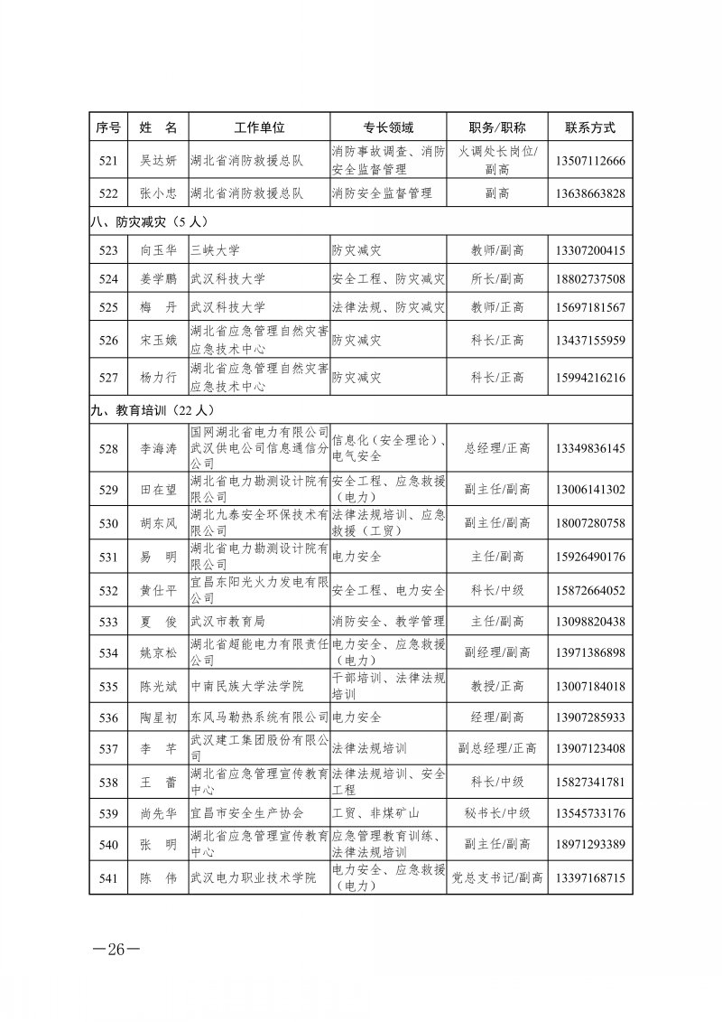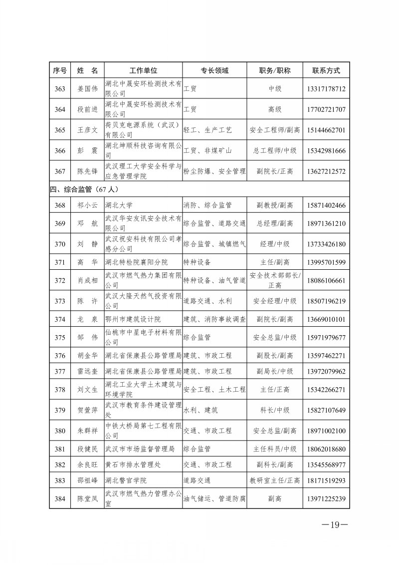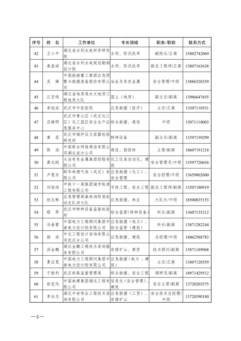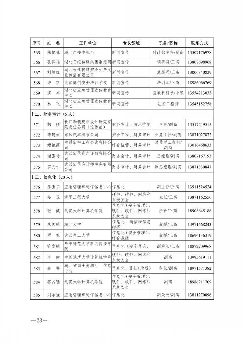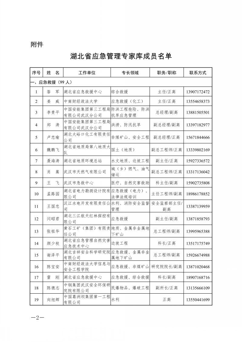 省应急管理厅关于湖北省应急管理专家库专家名单的公告