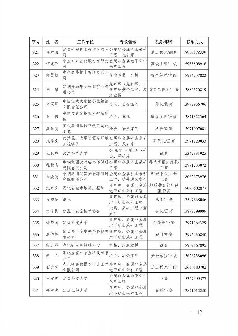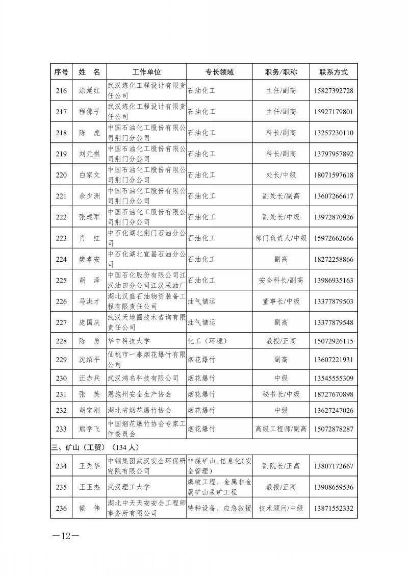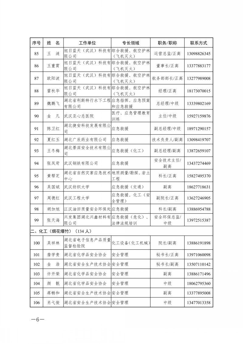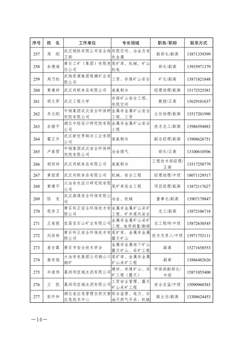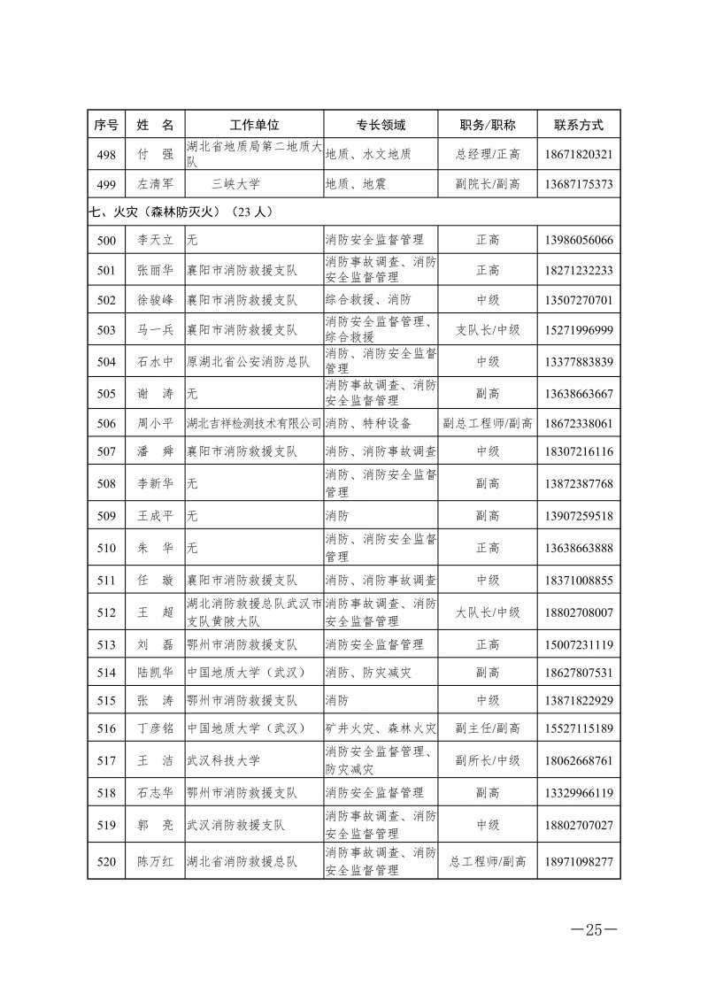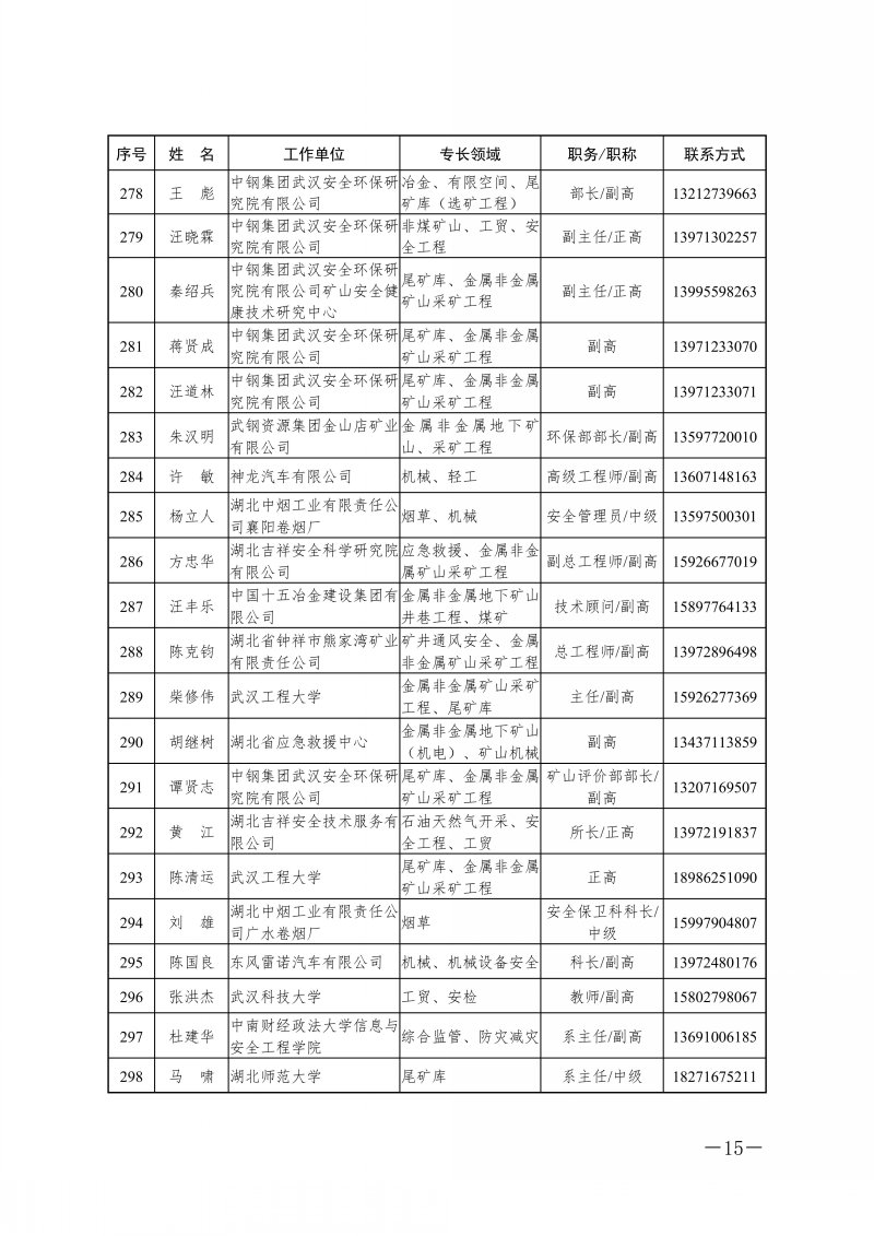 省应急管理厅关于湖北省应急管理专家库专家名单的公告
